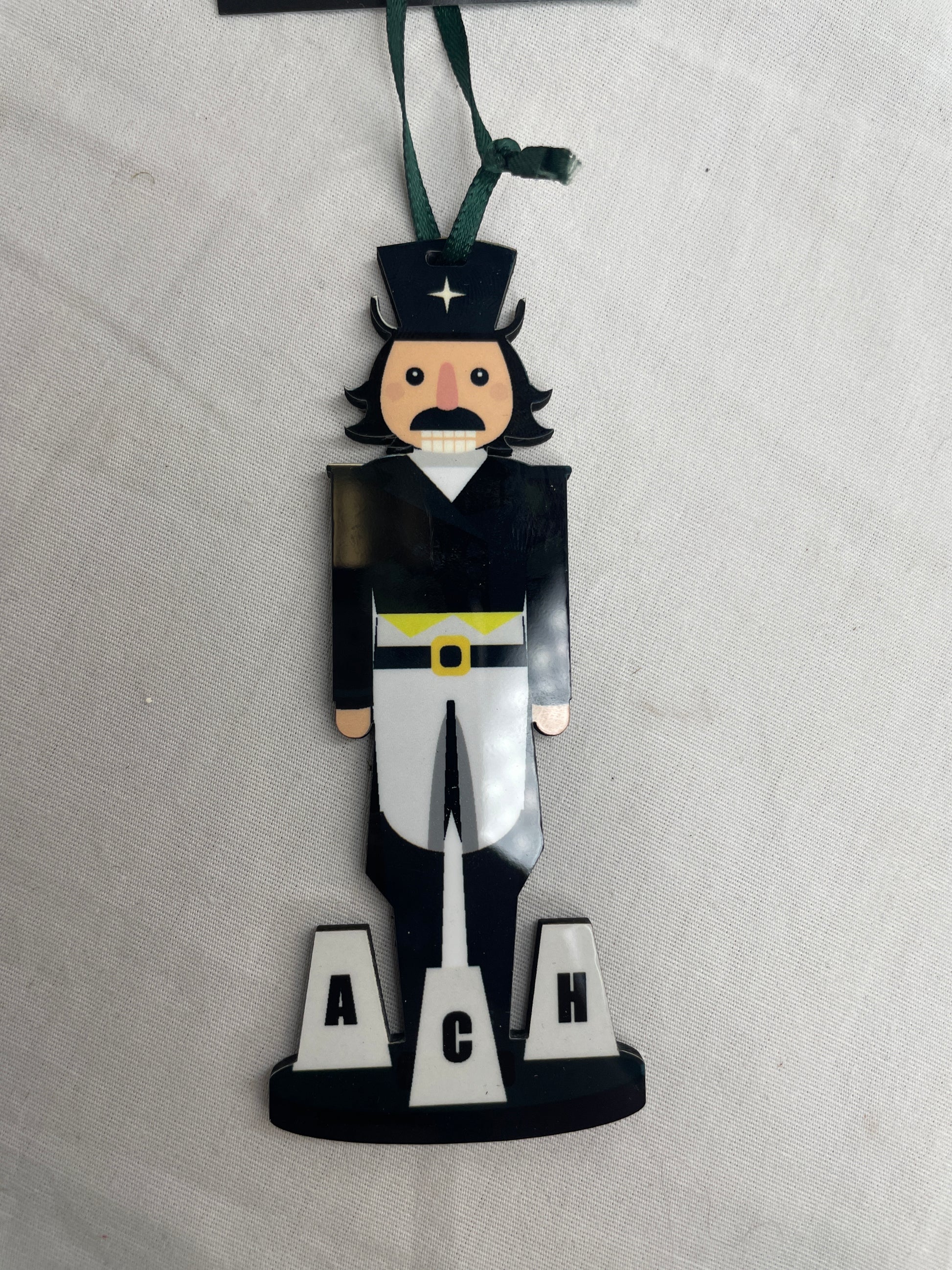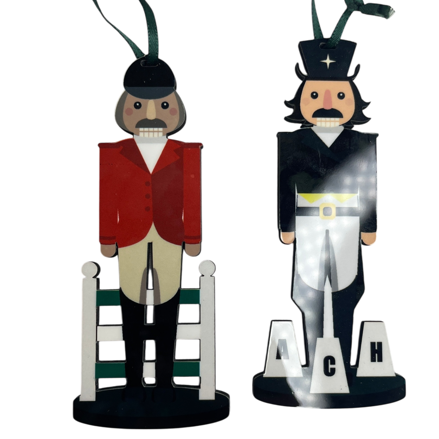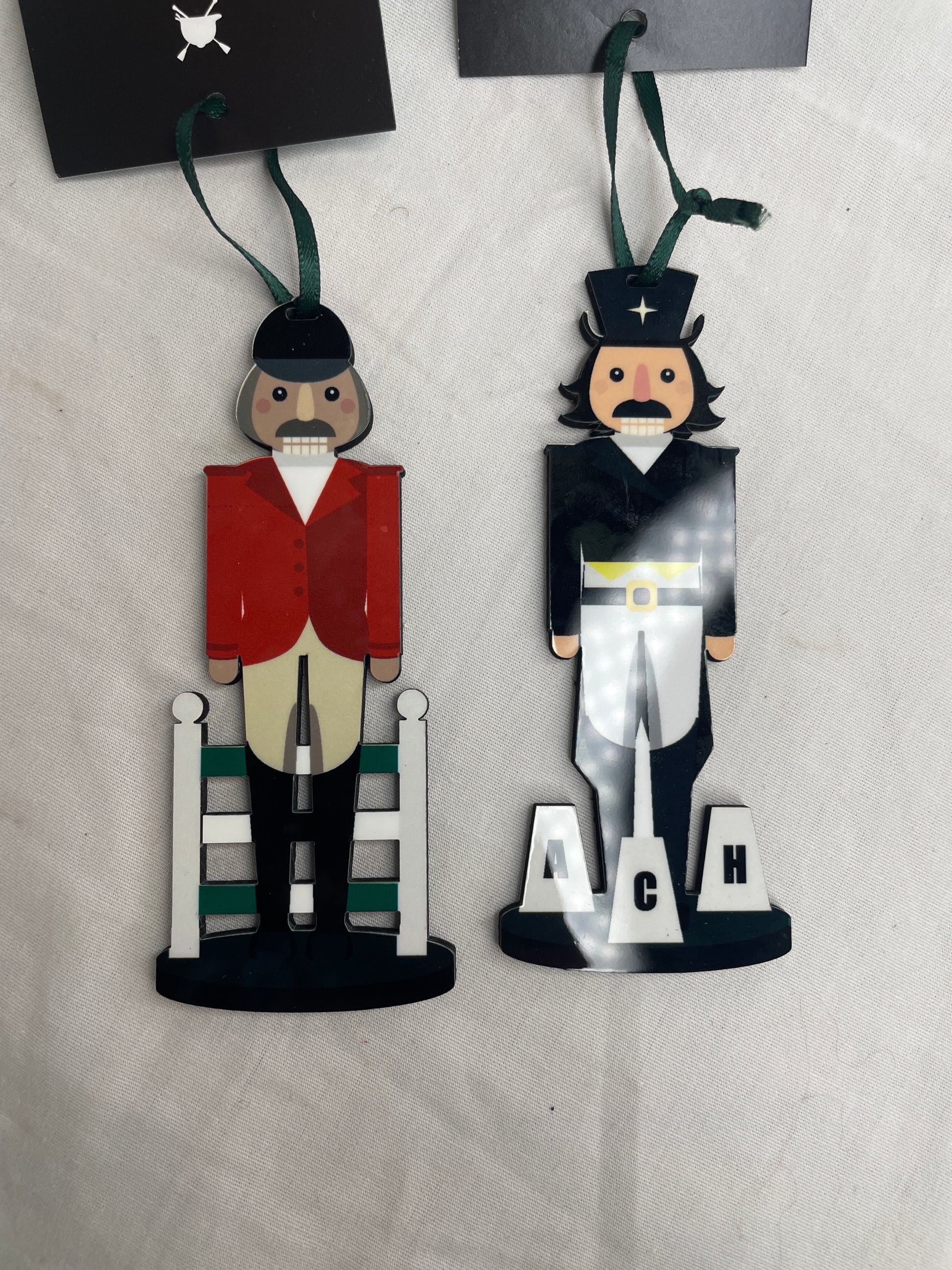Hunt Seat Paper Company Laser cut ornament with printed horse graphic. Measures 4" tall. Comes with green ribbon to hang it on your tree!