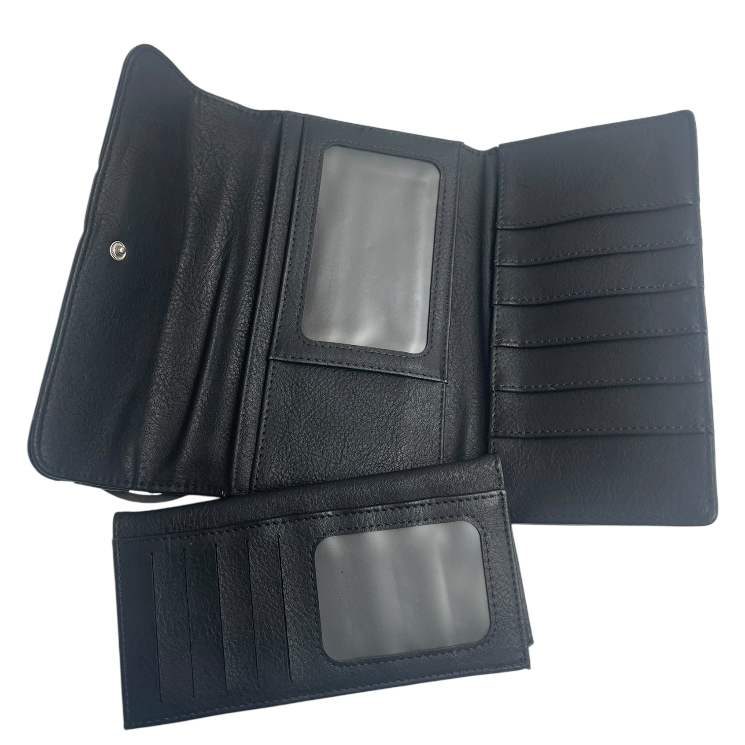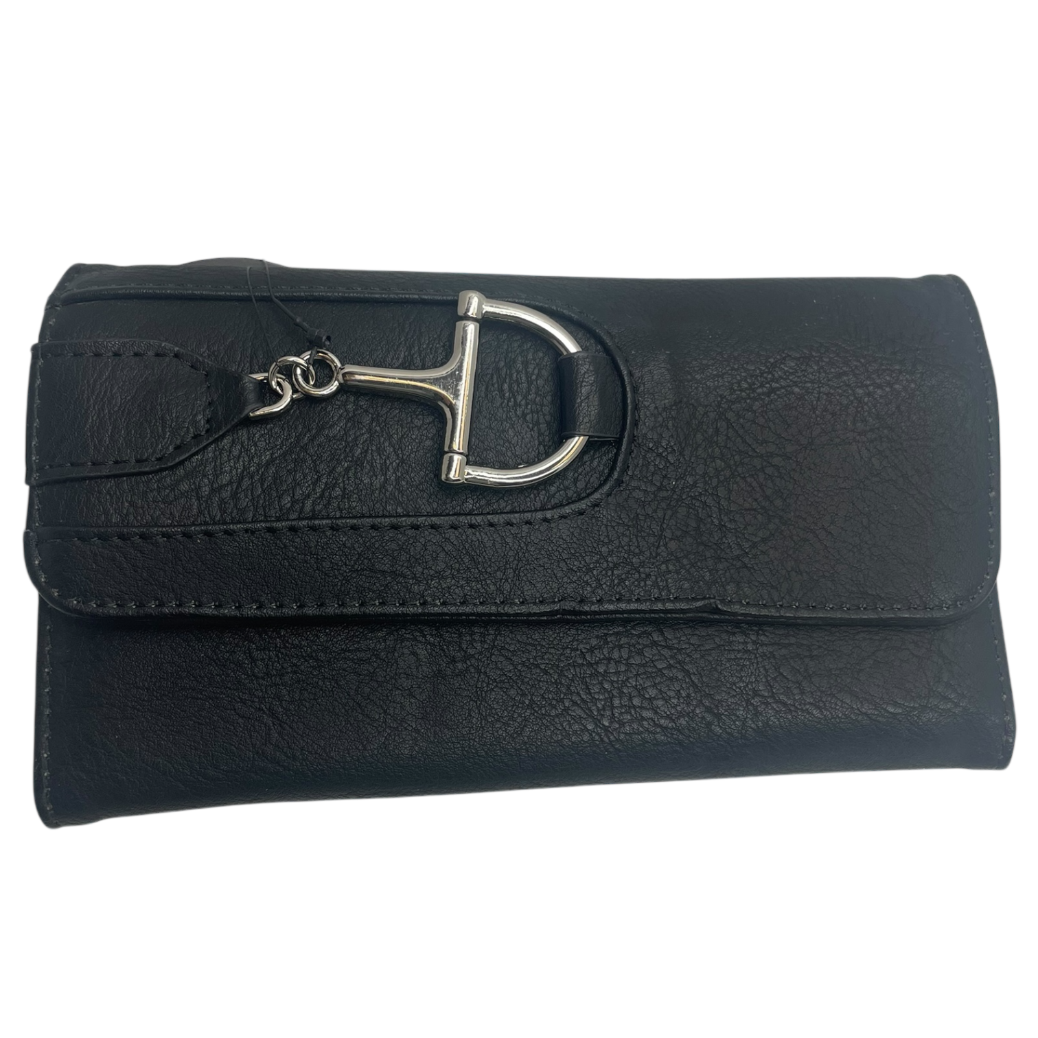 CONSIGNMENT AWST International Clutch Wallet. Black with silver bit design, outside pocket, 6 card slots, removable checkbook insert.