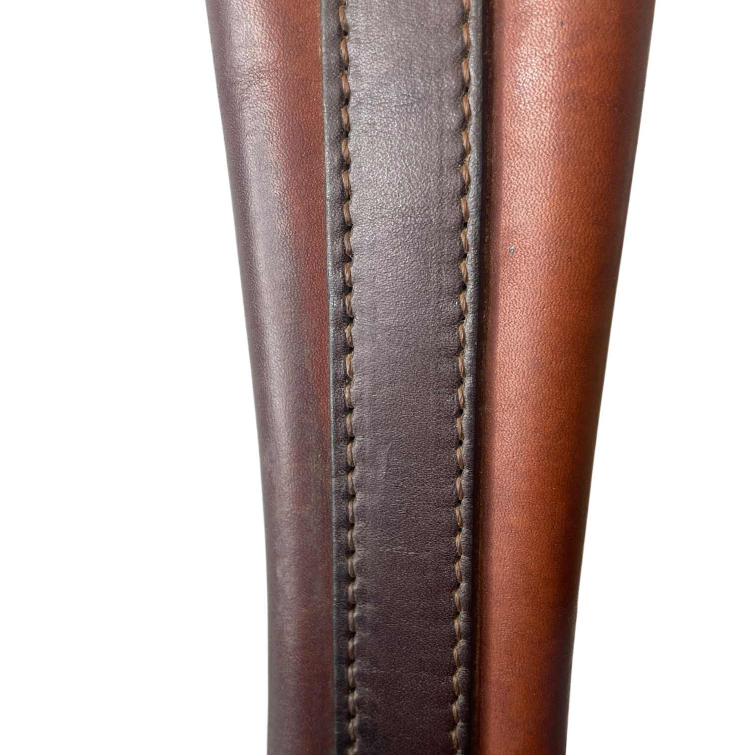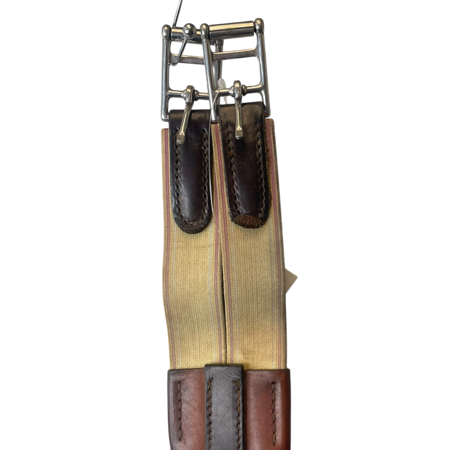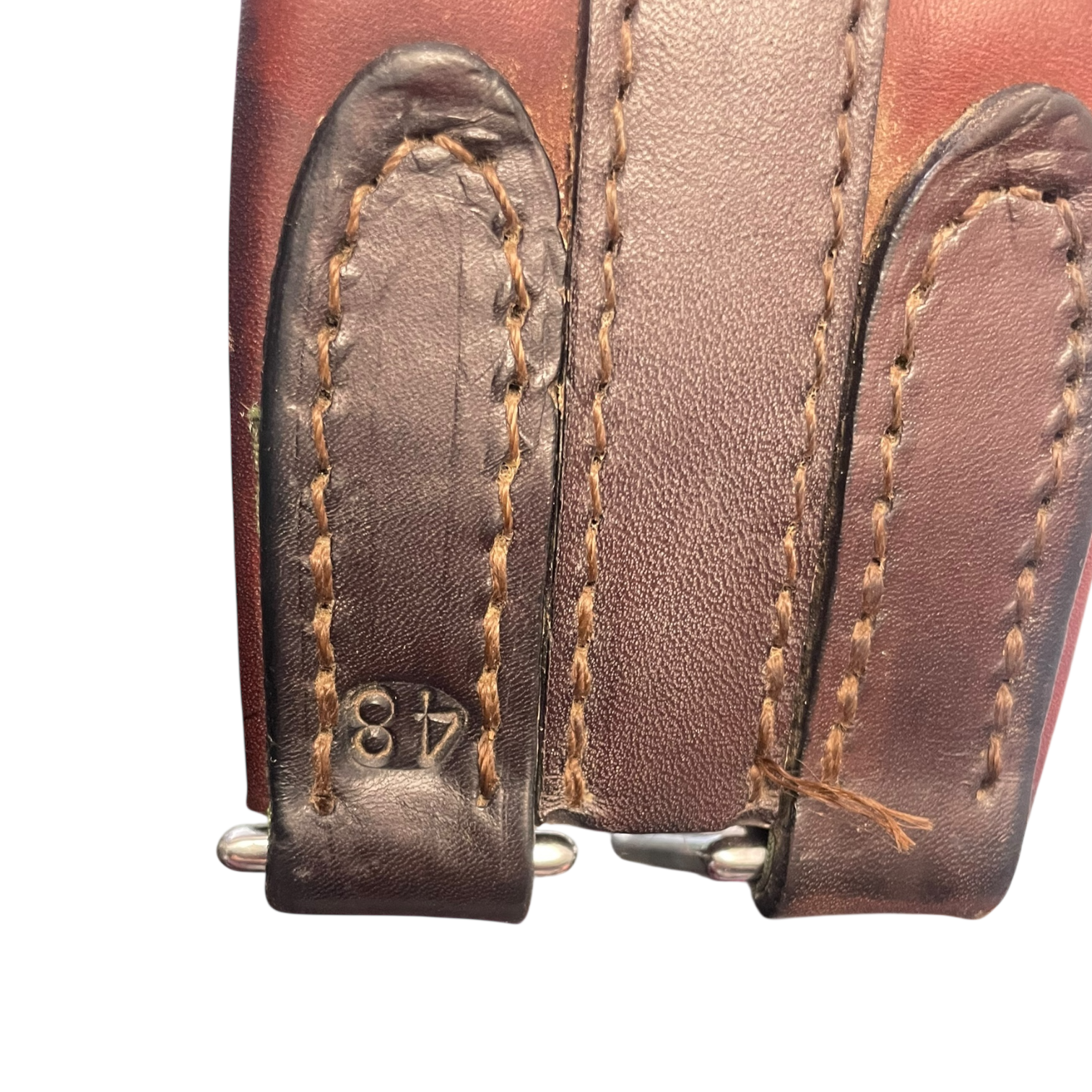 CONSIGNMENT Oakbark base with Havanna raised piece 48" leather girth. No brand indicated. Used with some signs of wear.