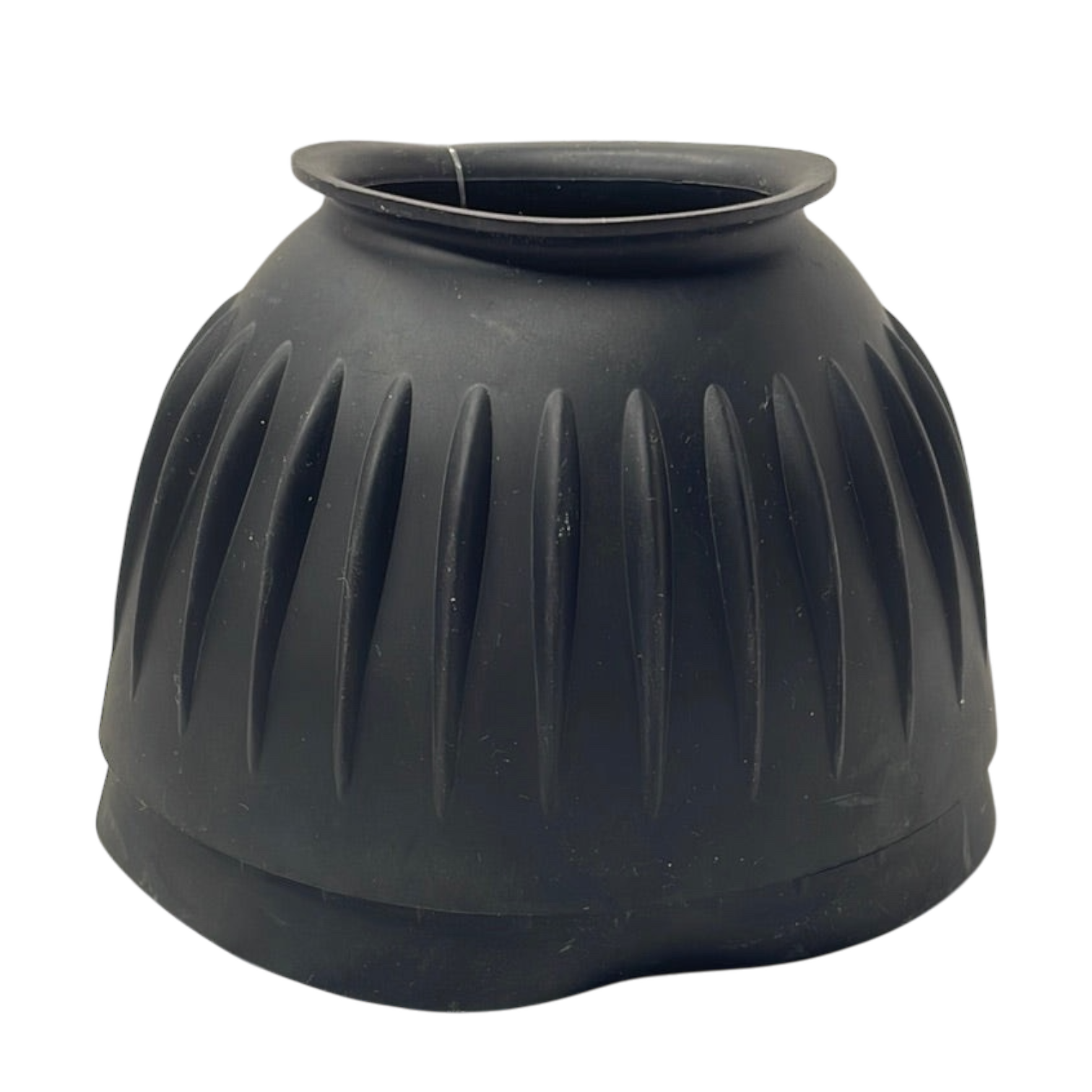 Black, ribbed, rubber, pull on bell boots. Size small.