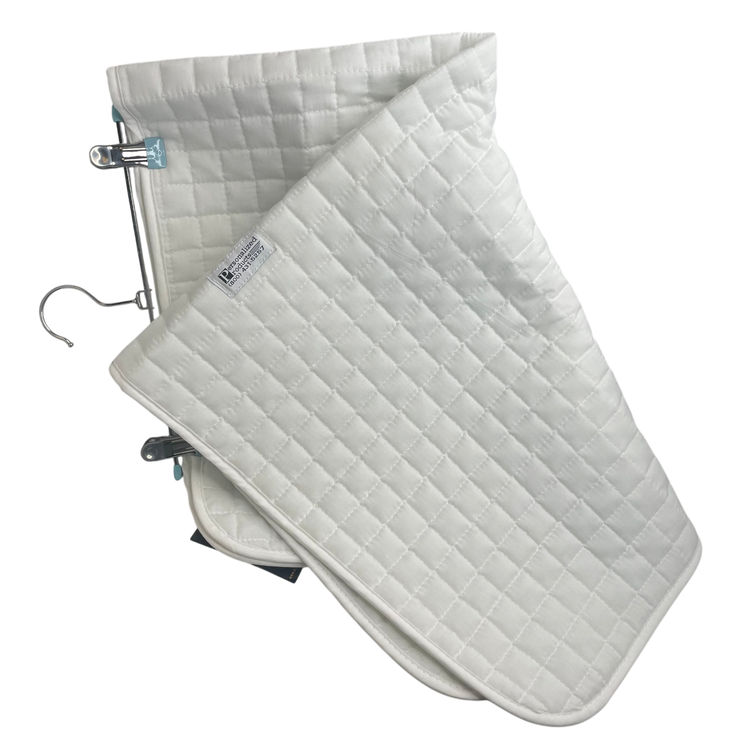 26x17 These premium baby pads are designed to be washed and look good after repeated use. Poly shell with 200 gram polyester padding. 1" square quilt .The finished and bound edges do not unravel after use.