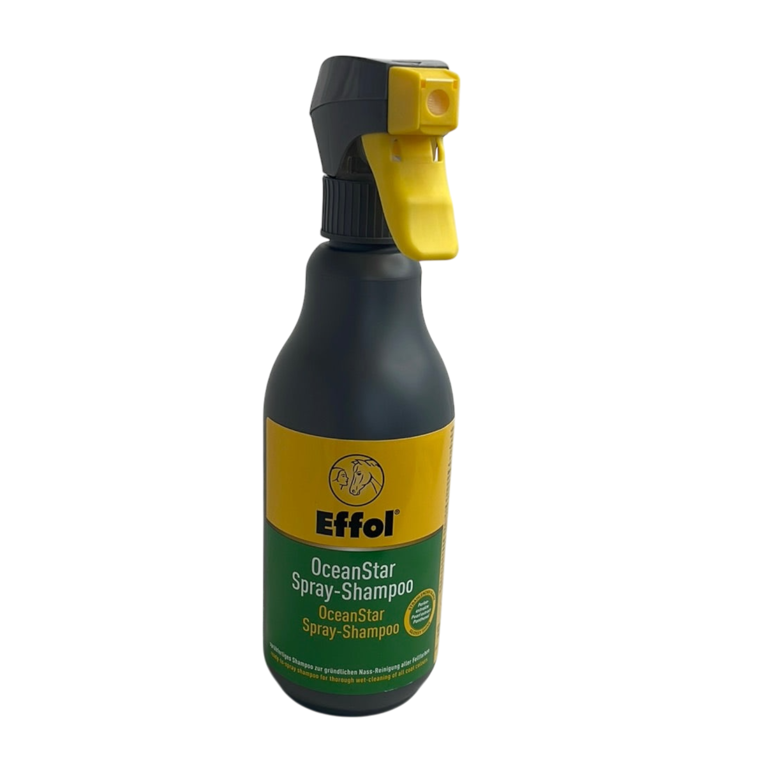 17 fl oz. The unique horse and pony shampoo with the practical spray function is much easier to apply than conventional products. It is sprayed into the damp coat, rubbed in briefly and then rinsed off. It cleans deep into the pores of the horse‘s coat without damaging the skin‘s protective film. OceanStar Spray-Shampoo is suitable for all coat colors. It contains pearl extracts which ensure a unique, shimmering shine which is guaranteed to last for a long time. Contains: panthenol, pearl extracts, mild surfactants