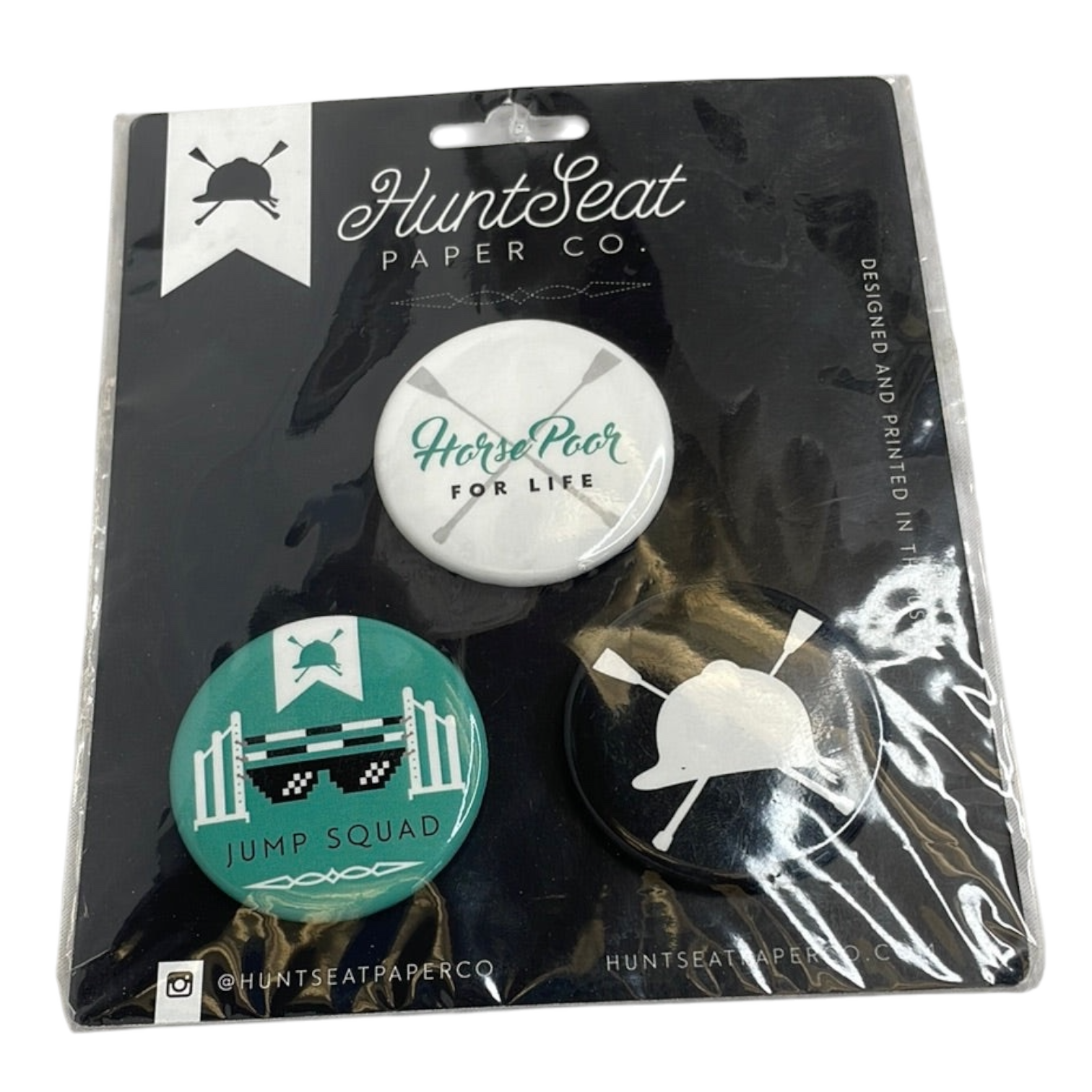 Hunt Seat Paper Co. set of 3 enamel pins: horse poor for life/jump squad/logo