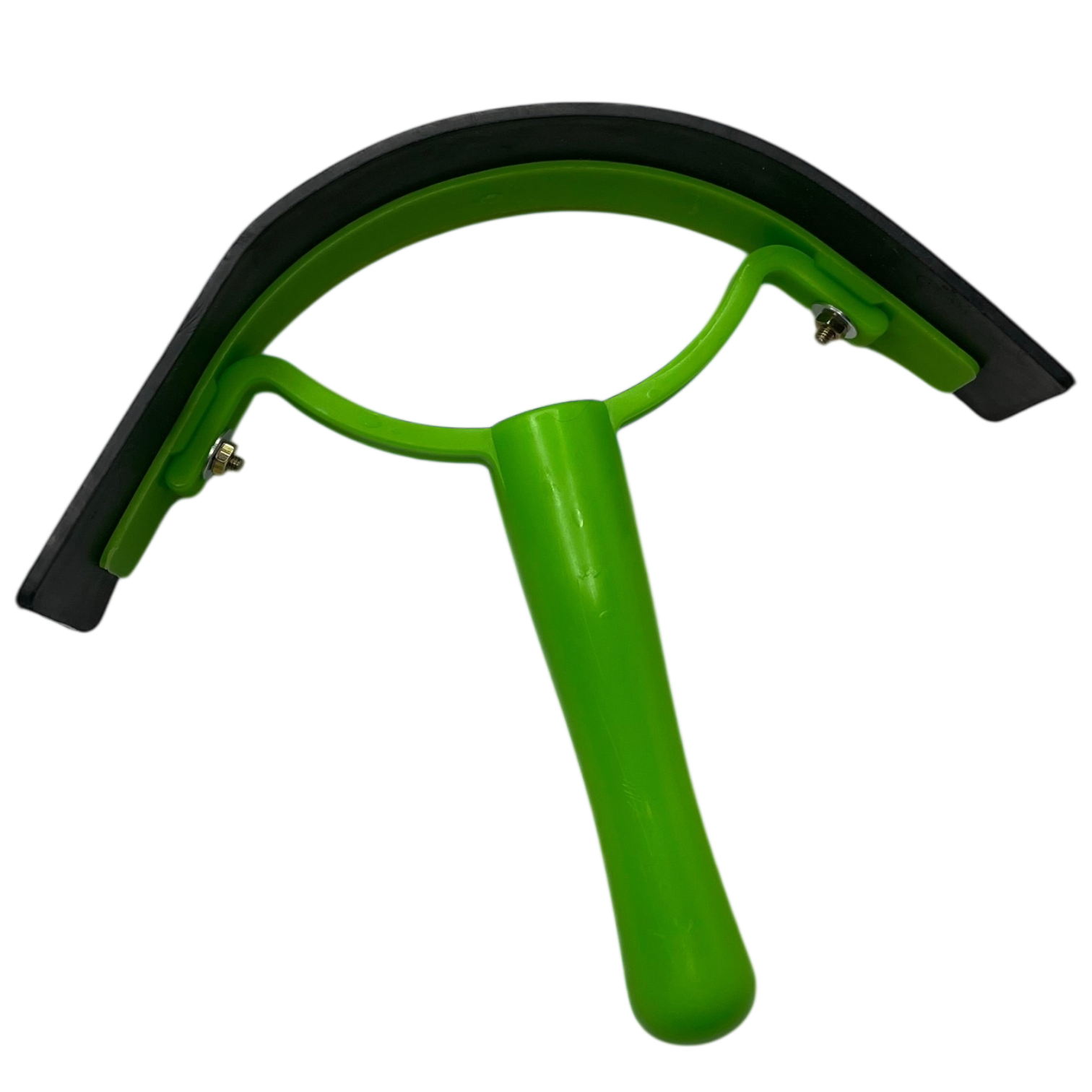 This durable sweat scraper is made of a sturdy polymar material with an ergonomic shaped handle and long flexible rubber squeegee. This tool easily removes excess water and sweat in just a few sweeps! 11" long, 5" handle