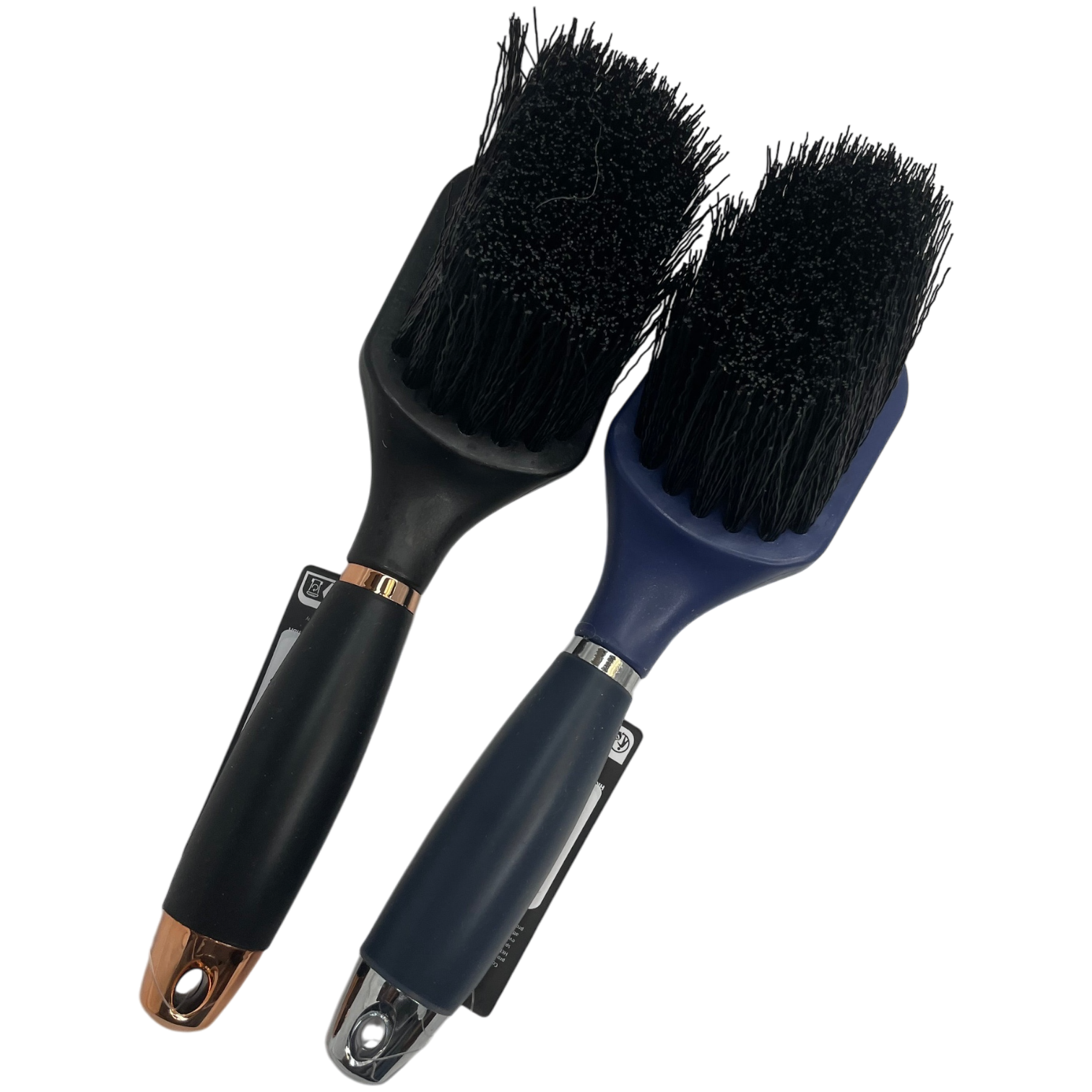 Long hard bristled brush with padded handle and loop opening to hand optimal for cleaning/brushing hooves.