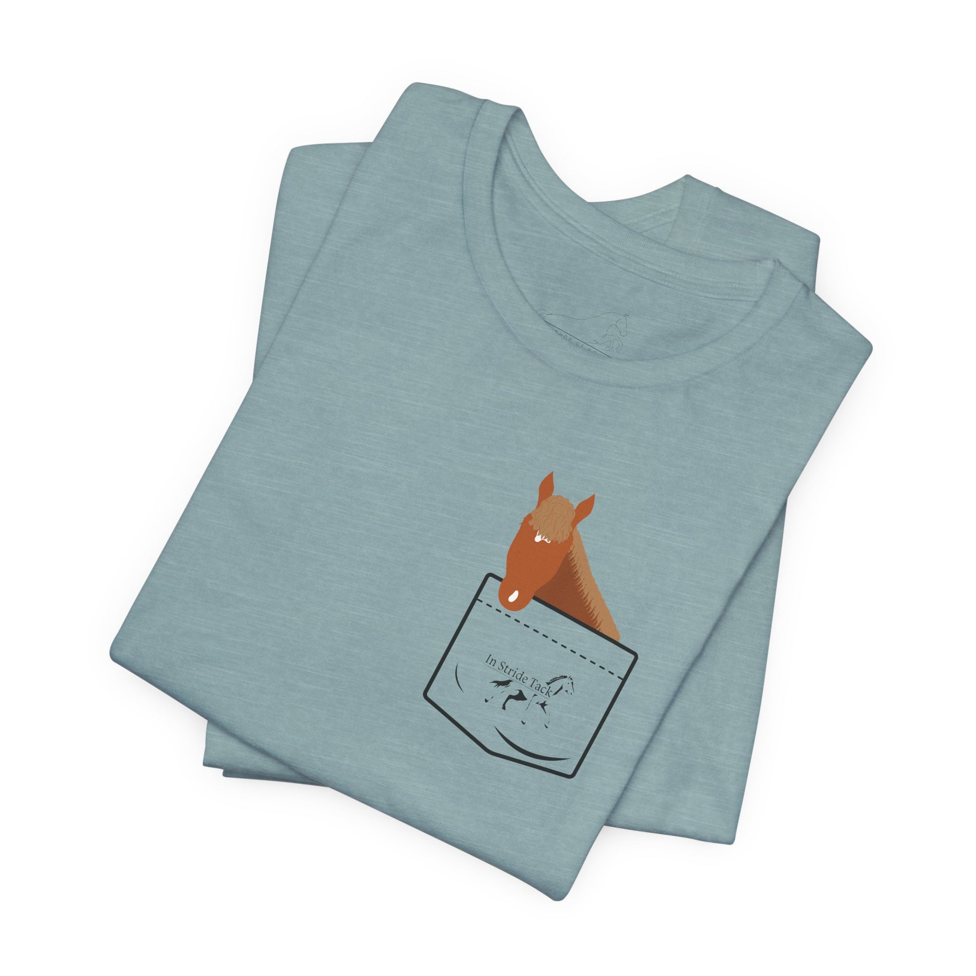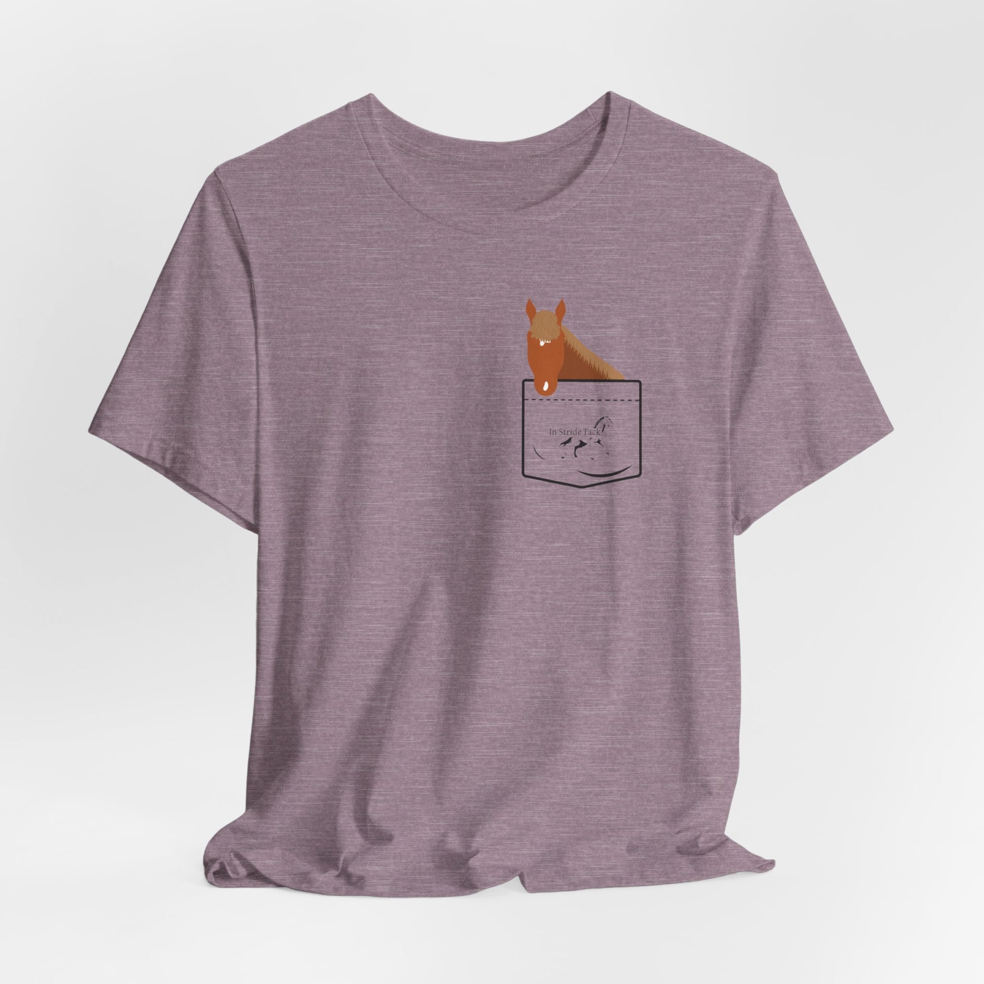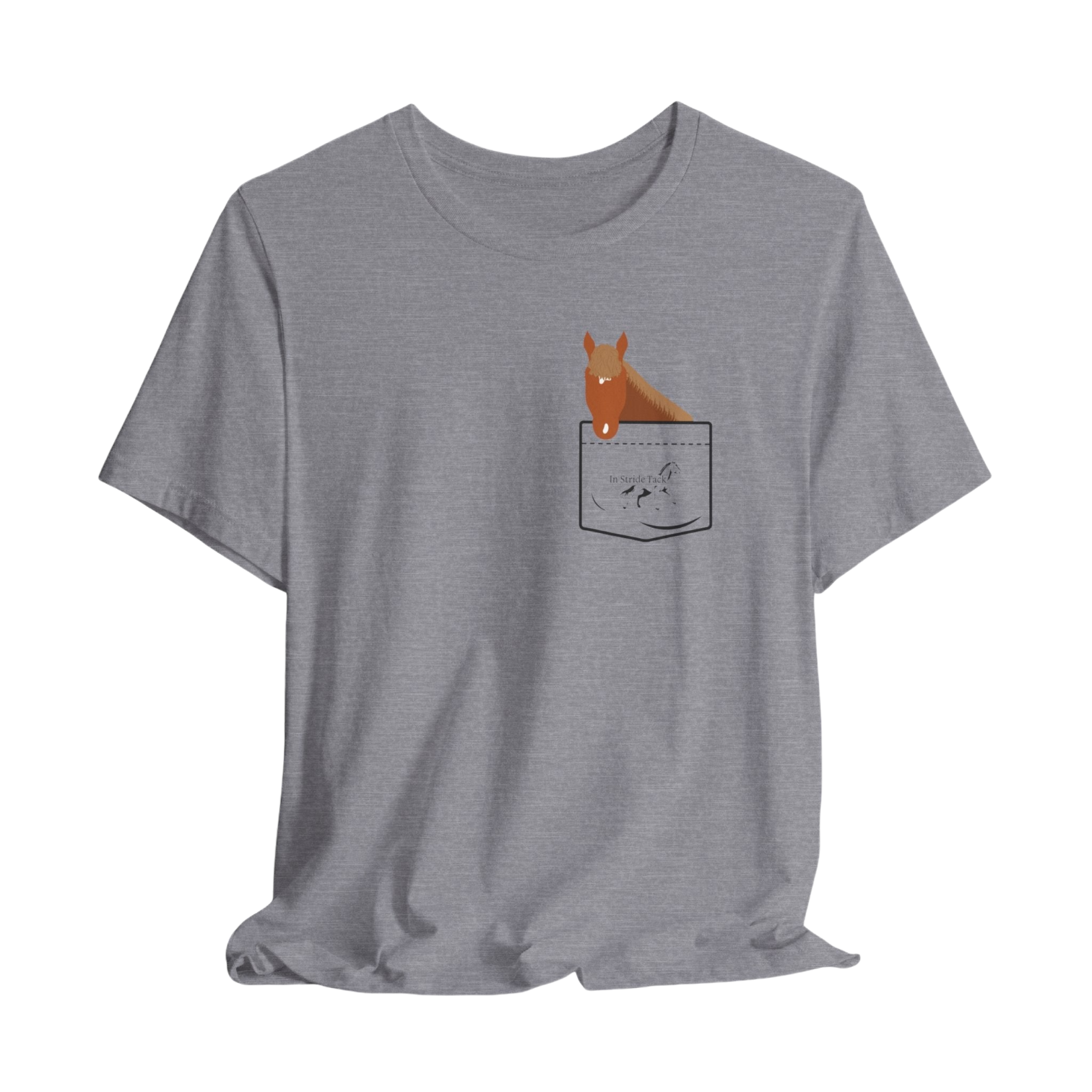 Saddle up your style with In Stride Tack's NEW Pocket Pony Shirt! Available in four classic colors and featuring five different playful pony designs, this shirt adds a whimsical touch to any outfit. This listing is for our Chestnut pony!