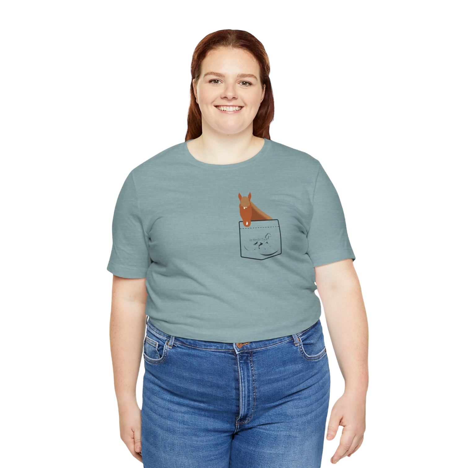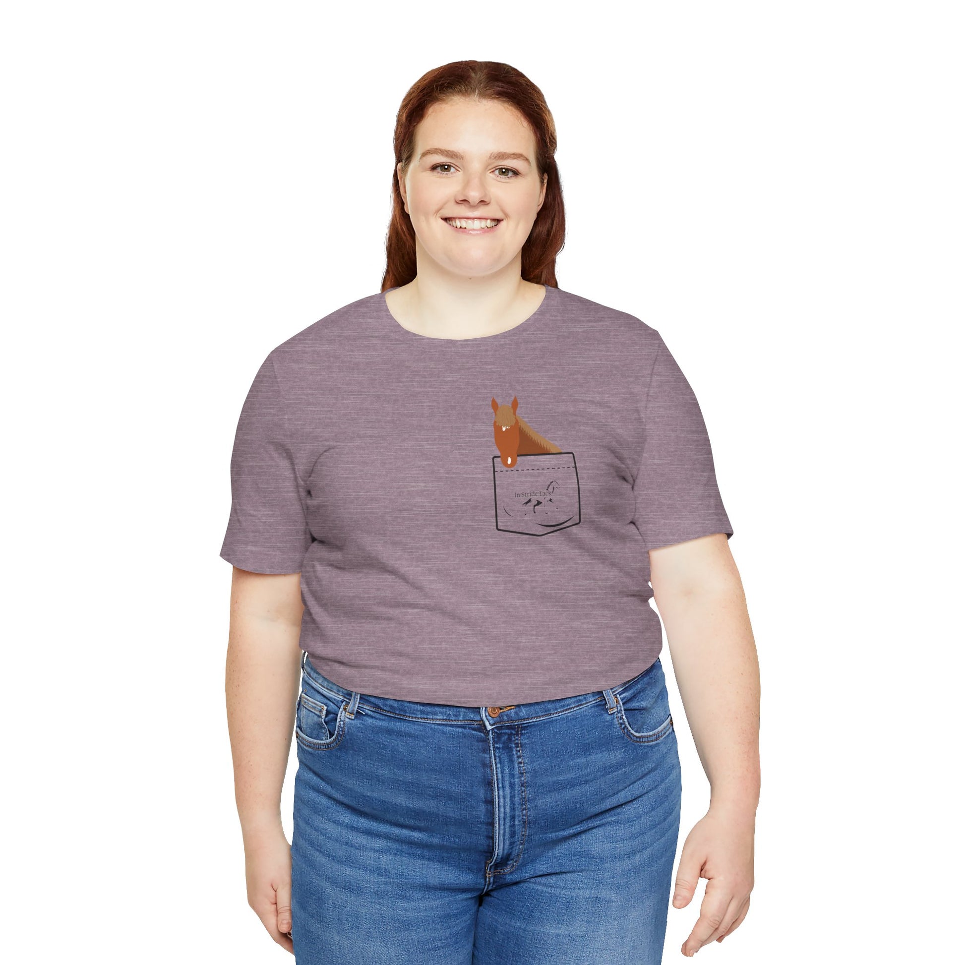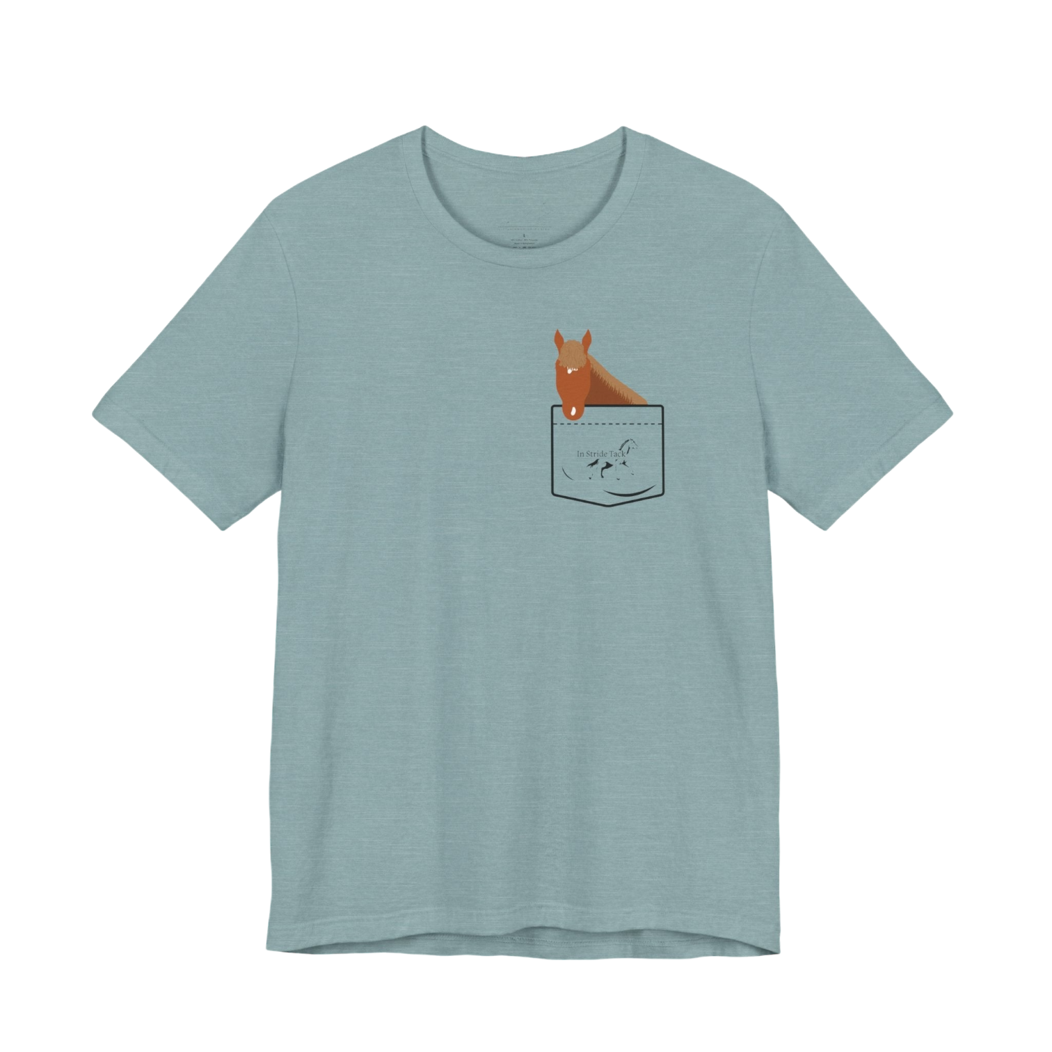 Saddle up your style with In Stride Tack's NEW Pocket Pony Shirt! Available in four classic colors and featuring five different playful pony designs, this shirt adds a whimsical touch to any outfit. This listing is for our Chestnut pony!