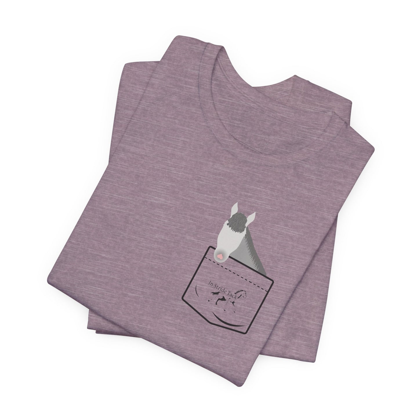 Saddle up your style with In Stride Tack's NEW Pocket Pony Shirt! Available in four classic colors and featuring five different playful pony designs, this shirt adds a whimsical touch to any outfit. This listing is for our Grey pony!