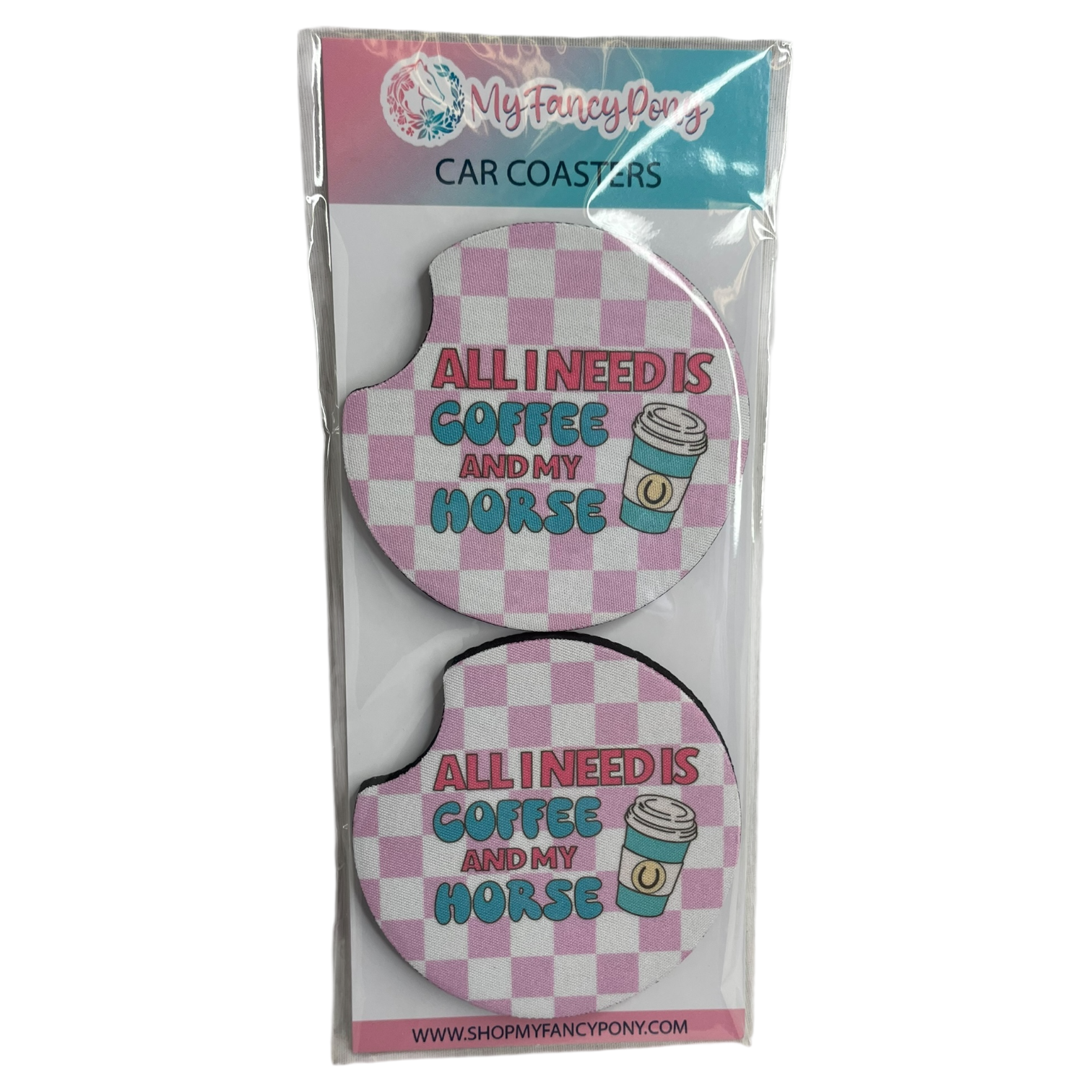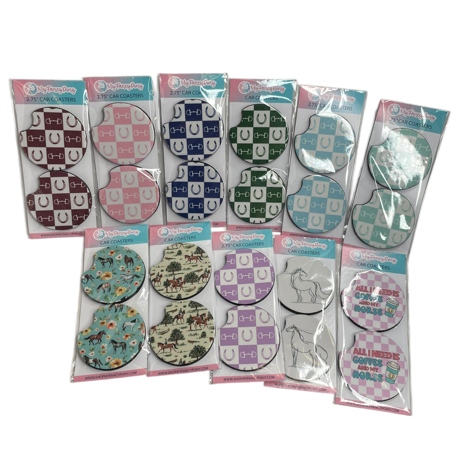 Add a touch of equestrian style to your ride with this set of 2 neoprene car coasters, each featuring a unique horse-themed design. Perfectly sized at 2.75" in diameter, they fit most standard vehicle cup holders to keep them clean, dry, and stylish. Made from soft, durable neoprene, these coasters are lightweight, absorbent, and easy to remove for quick cleaning. They’re designed to protect against drips and spills while showing off your love for horses every time you hop in the car.
