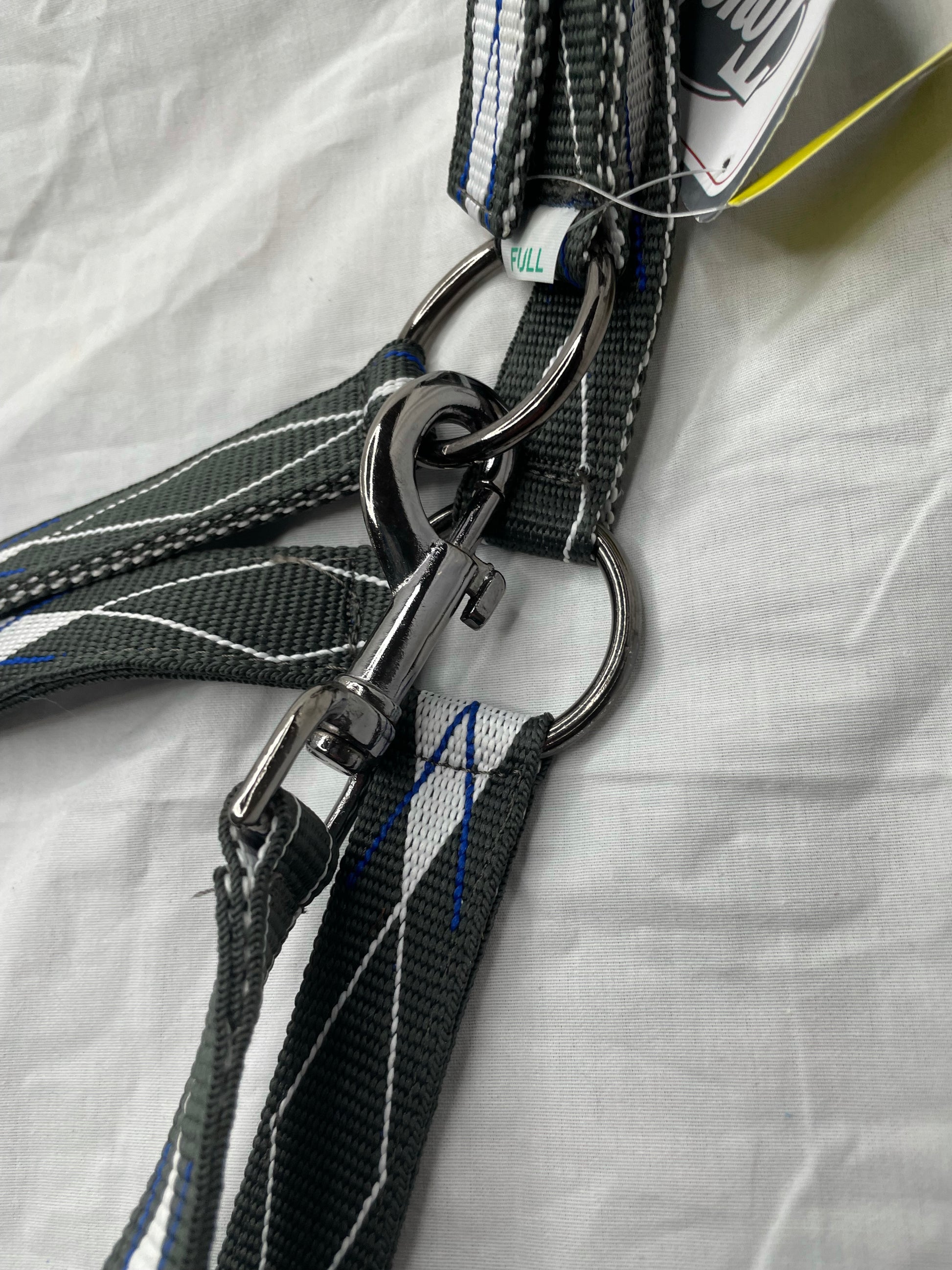 Single ply halter with argyle pattern, gun metal finished hardware