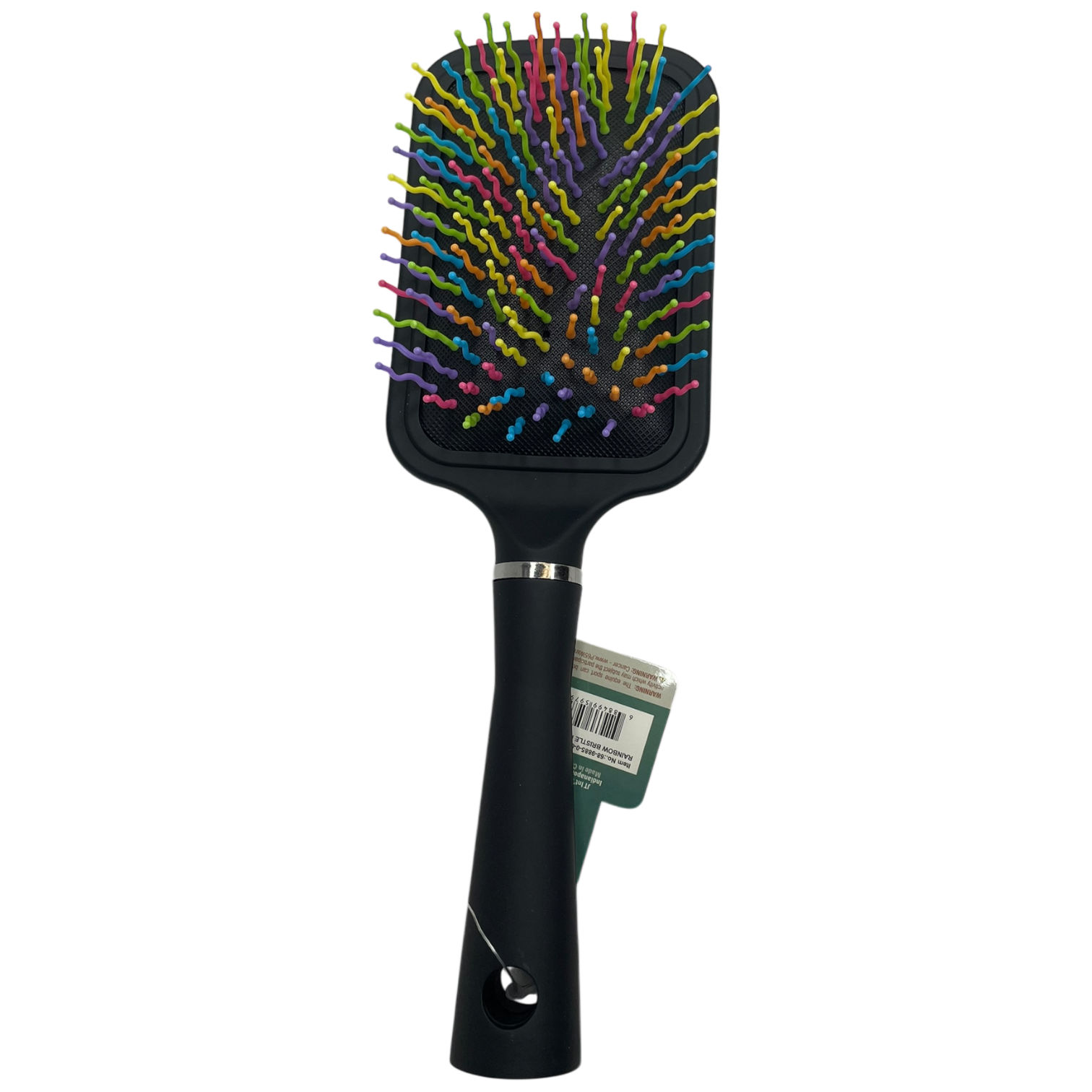 This large paddle brush features bright rainbow bristles in a fun wavy design that powers through tangles with ease.